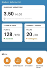 Selanjutnya ada fitur Academic Services. Lewat fitur ini, kalian bisa mengurus berbagai administrasi kampus, seperti pembayaran SPP, pengajuan beasiswa, izin magang, hingga pengajuan sertifikat kelulusan. Kalian juga bisa mengecek nilai atau GPA, melihat jumlah Student Activity Transcript (SAT), serta memantau jumlah Community Service (Comm Serv) yang sudah dijalani. Semua bisa diakses langsung dari satu platform yang sama, praktis tanpa perlu repot.