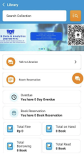 Dengan mengeklik fitur Library, kalian bisa mengakses perpustakaan digital Binus yang bisa,kalian gunakan untuk mencari E book, jurnal, dan berbagai referensi akademik lainnya. Selain itu disini, kalian juga bisa melakukan reservasi buku, memesan ruangan, atau bahkan bisa berbicara langsung dengan pustakawan Binusian jika kalian membutuhkan bantuan terkait peminjaman buku atau masalah teknis lainnya