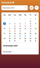 Jika kalian klik ikon kalender yang berada disebelah kanan ikon home, maka kalian akan ditampilkan menu schedule. Pada menu Schedule ini, mahasiswa bisa melihat jadwal kegiatan akademik dalam tampilan kalender bulanan.
