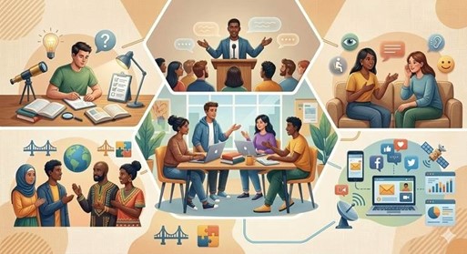 lustrasi: gemini.google.com — Belajar Komunikasi Bukan Hanya Bicara : Ini Yang Dipelajari Mahasiswa.